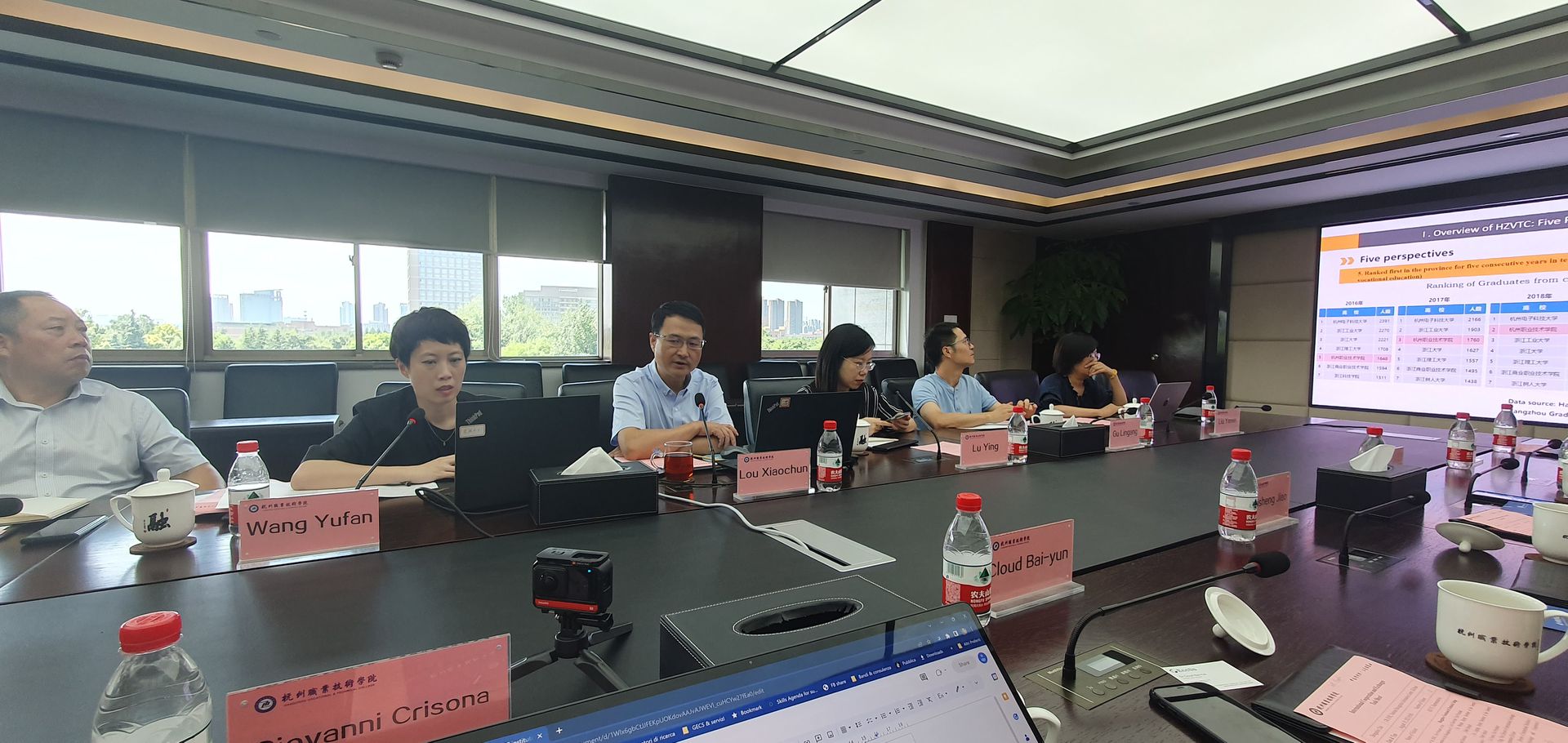 On August 19, 2023, Giovanni Crisona, Chairman of Skillman, and Torsten Kietz, Senior Advisor of Skillman, together with Cloud Bayun, Chief Advisor of UK ENIC, and other members of an European delegation, met with Lou Xiaochun, Vice President of Hangzhou Vocational & Technical College, Fu Wenjun, Deputy Secretary of the General Party Branch, Gu Lingang, Deputy Secretary of the General Party branch, Liu Yanan, Vice President, Lu Ying, Vice Director of International Exchange and Cooperation Division, and Wang Yufan, Director of International Relations (International Exchange and Cooperation Division), to discuss potential collaboration focusing, in particular, the opportunities offered by Tracks4Crafts.eu initiative.